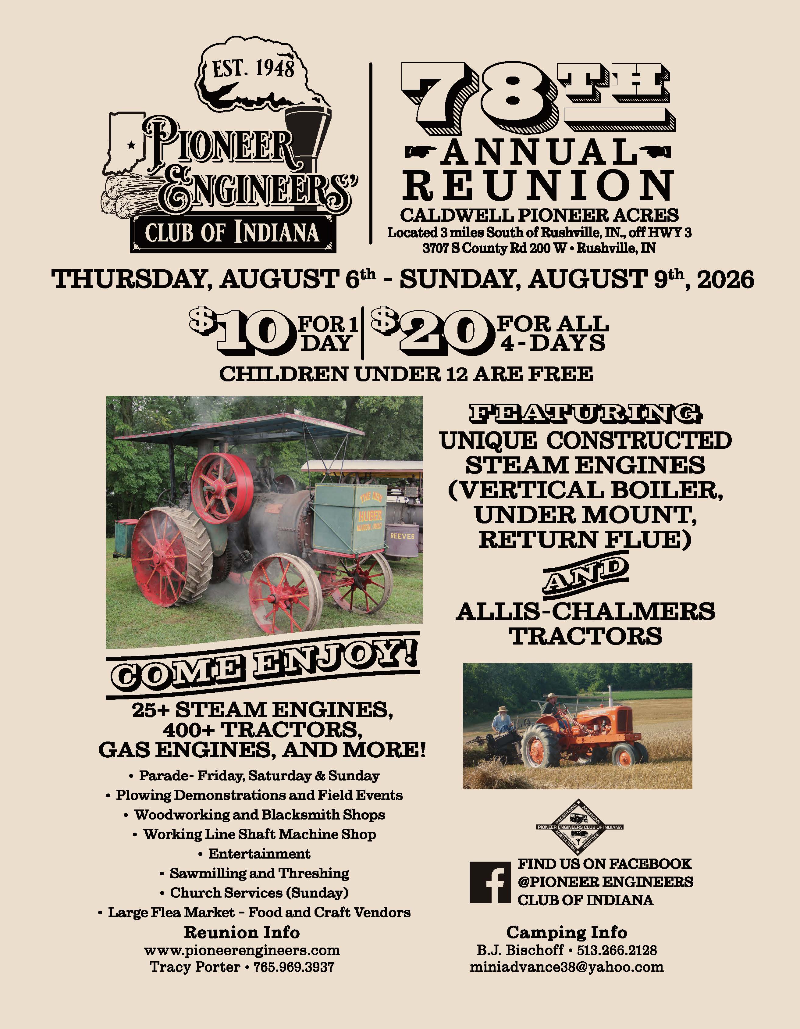 Golf carts and UTVs are a major safety concern at our reunion. We do, however, understand that some people would not be able to enjoy our gathering without one. Our officers and directors use them to quickly assist with issues that come up around the grounds. We ask that you seriously consider your need for one, and if you don't need it, don't bring one. If you do bring one, you will have to register it for a fee at the gate unless you have a handicap sign/sticker. If we see it being used irresponsibly (driven too fast, by unlicensed drivers, or in the flea market, etc.), you may lose the privilege of driving it on the grounds. A better option is to bring a restored garden tractor with a little wagon or something along those lines that serves as an exhibit, a ride, and a truck. No charge for that! If a golf cart is a necessity for you, and you don't have one of your own, please contact Indiana Golf Car at 317-984-9339.